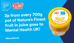 Over 12 months Nature’s Finest have pledged to donate 2p from every 700g pot of fruit to Mental Health UK as part of their commitment to encourage a healthier lifestyle for all.